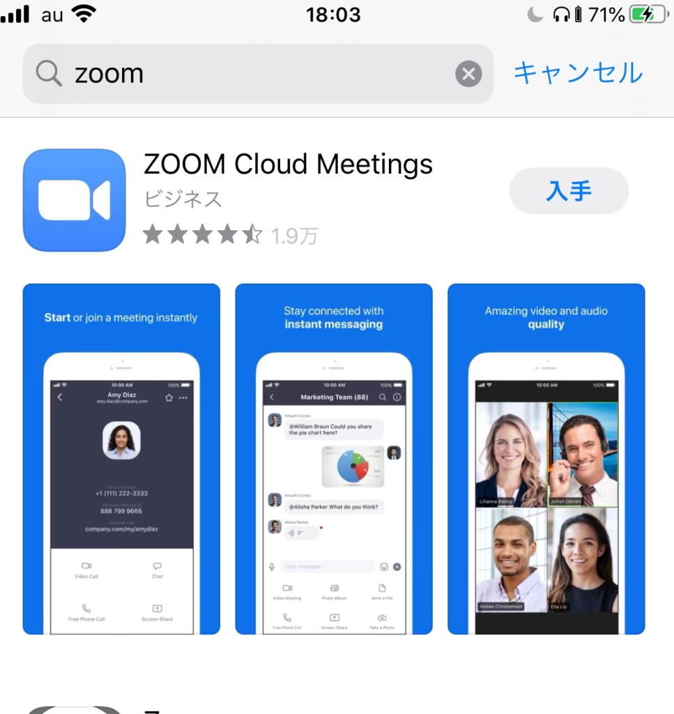 - スマホアプリから「Zoom」をダウンロードする