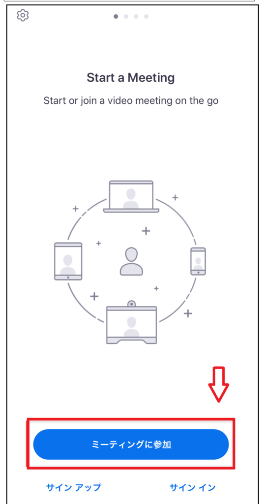 ②アプリ下部にある「ミーティングに参加」をタップ