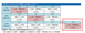 今は夫ひとりで配偶者と子供二人を養う「標準家庭」は2017年には5%(20人に1人)にも満たなくなったようです。