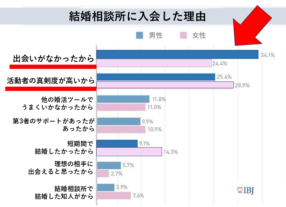 下記の表はIBJ成婚白書(2023年度)から「結婚相談所に入会した動機」をまとめたグラフです。