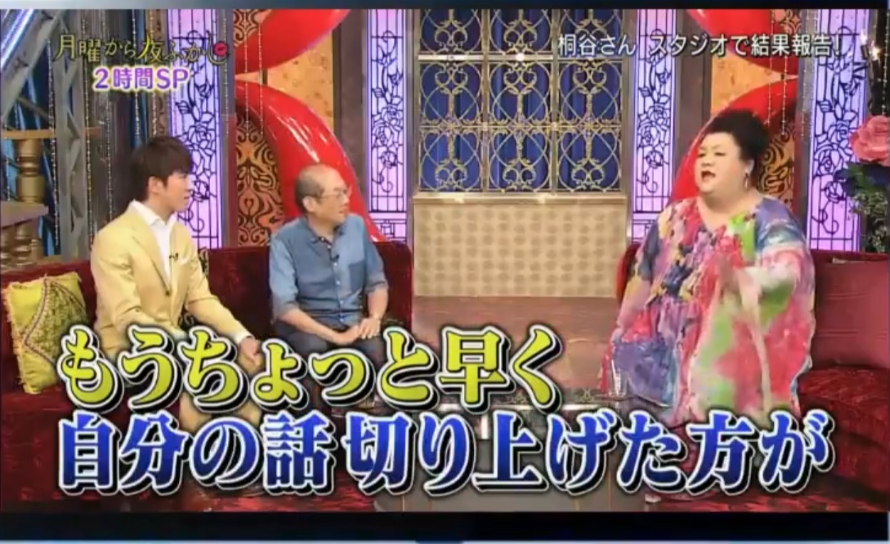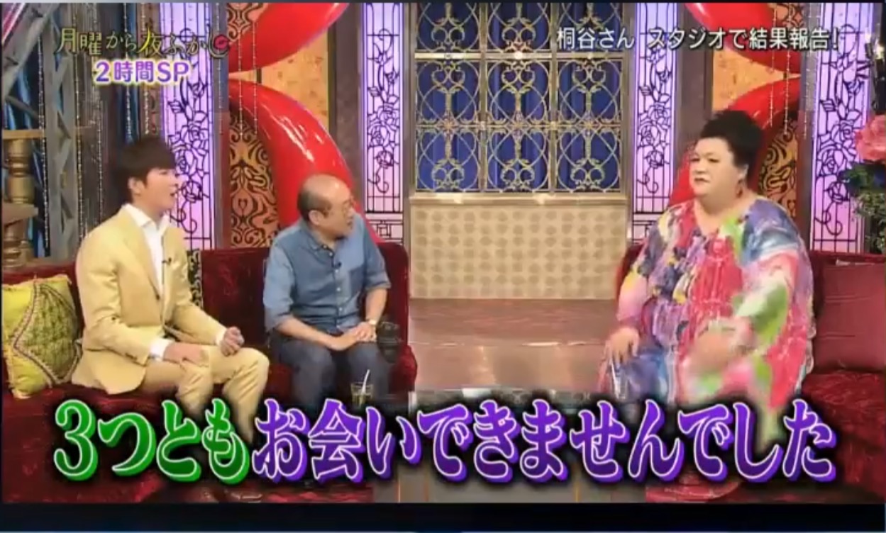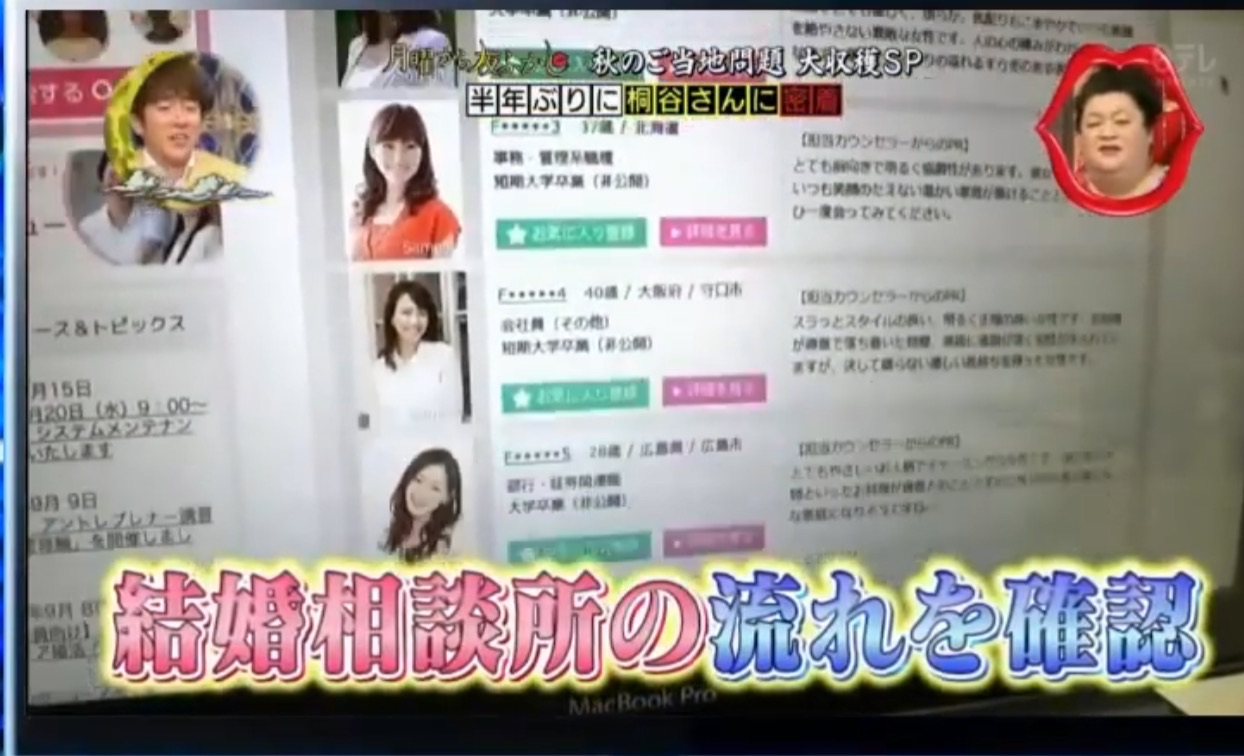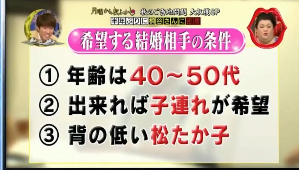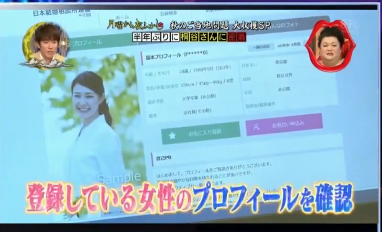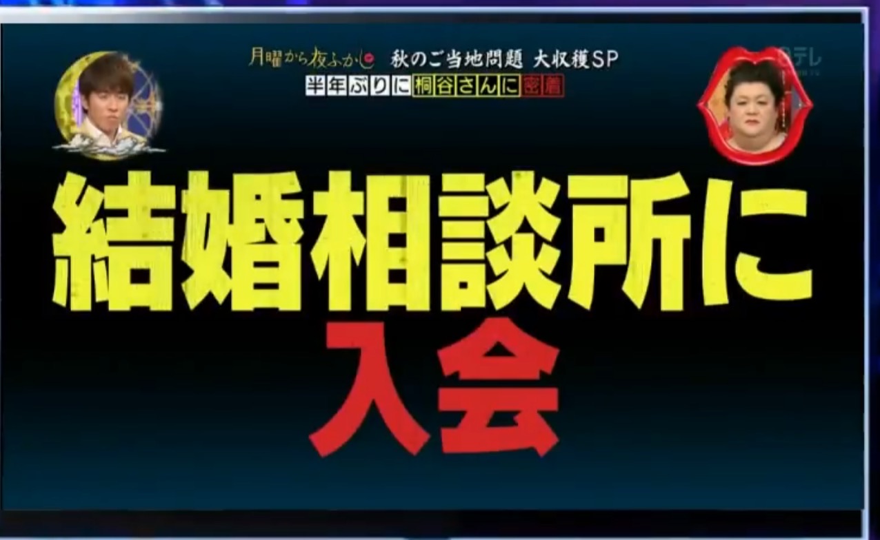 「月曜から夜ふかし」で「桐谷さんが婚活」という特集がありました。(2017年9月23日放映)