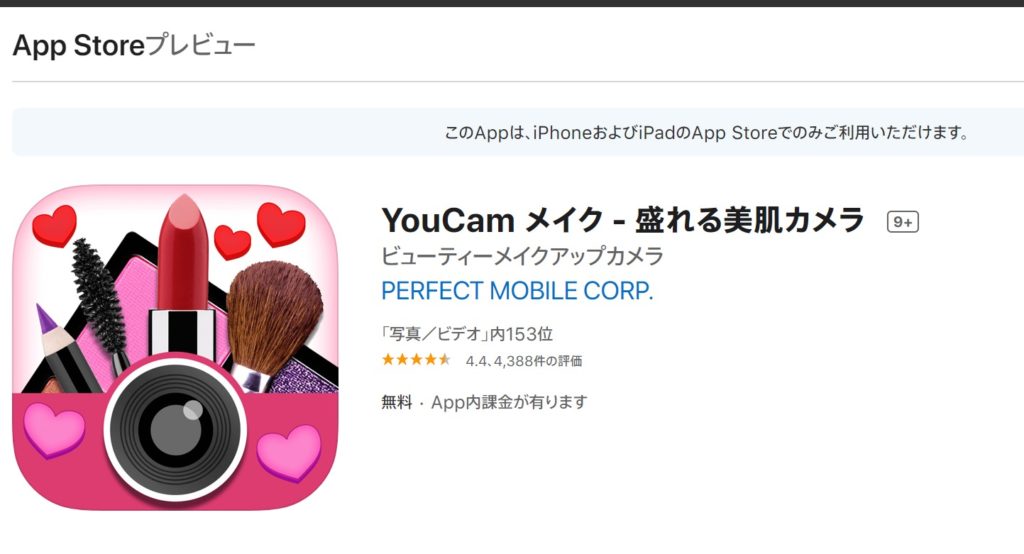 盛れる美肌カメラ「YouCam メイク」