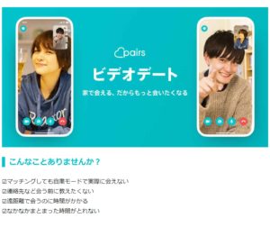 IBJのオンラインお見合いも最初は暫定的な扱いで始まりましたが、婚活アプリ最大手の「pairs(ペアーズ)」も2020年4月20日から「ビデオデート」がアプリ内に実装されました。
